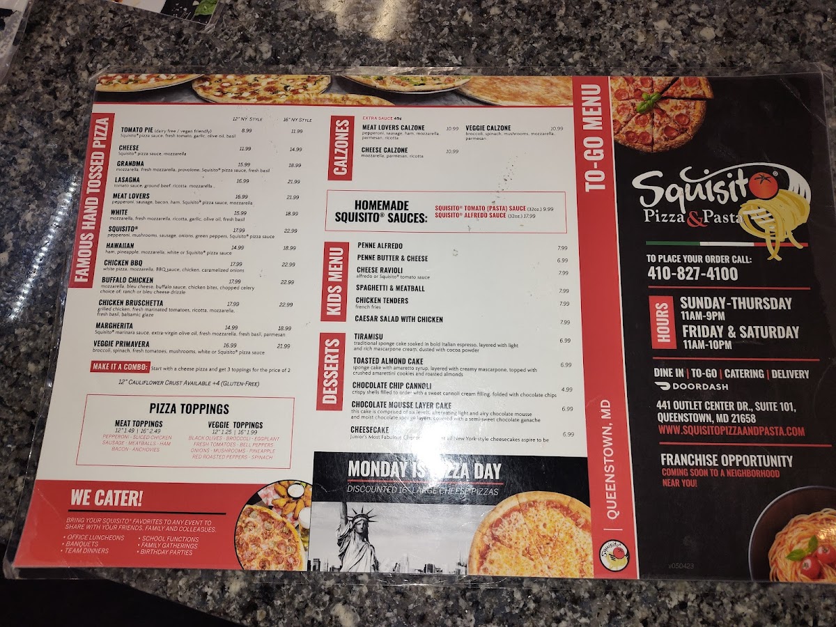 Welcome to Squisito Pizza and Pasta - Queenstown, where every dish celebrates the essence of Italian culinary artistry. Located conveniently at 101 Outlet Center Dr, this charming eatery offers a diverse menu that caters to all cravings. From hearty calzones like the Meat Lovers and Veggie options to mouth-watering Italian subs, each bite promises authentic flavors.